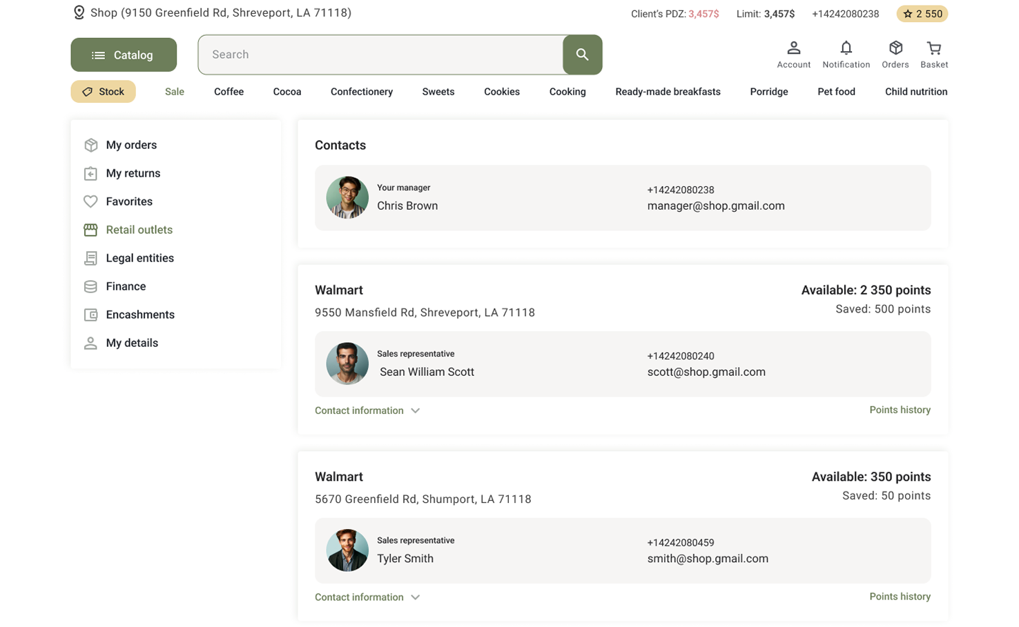 A separate dashboard was built for retail chains. They can place orders not for each store individually, but for the entire network at once