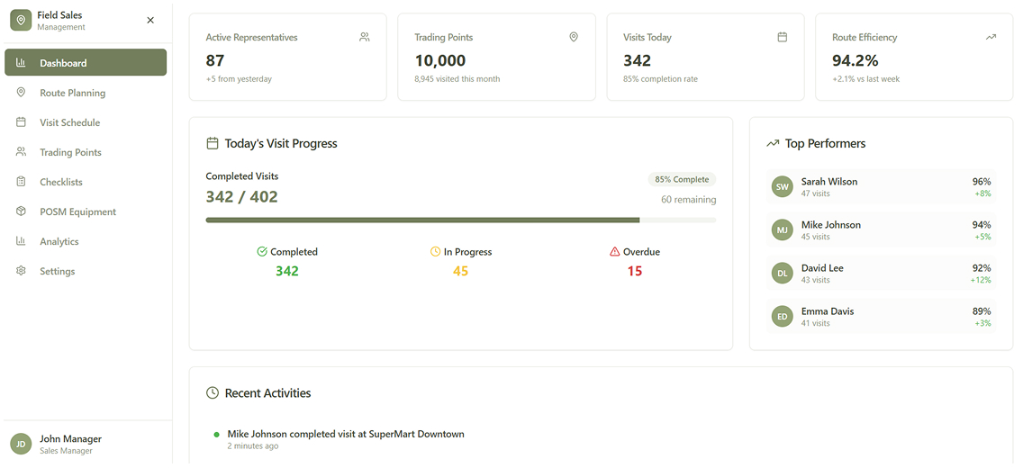 Managers got a user-friendly dashboard with calendars and smart tools for planning field visits.
