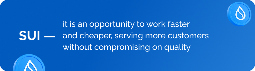 - In the financial sector, Sui helps to make transfers faster and without unnecessary delays. This is especially relevant for international companies, where every commission and delay hits the pocket.